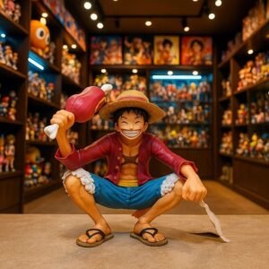 One Piece Luffy Squatting Eating Meat Figure 15cm