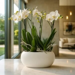Orchidée en pot Céramique Blanc